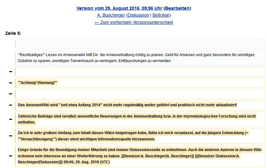 Viele Teile des Ameisenwikis sind archiviert. Man kann zwar keine Änderungen vornehmen und nichts zufügen, aber wen Inhalte interessieren, der kann sie hier abrufen: