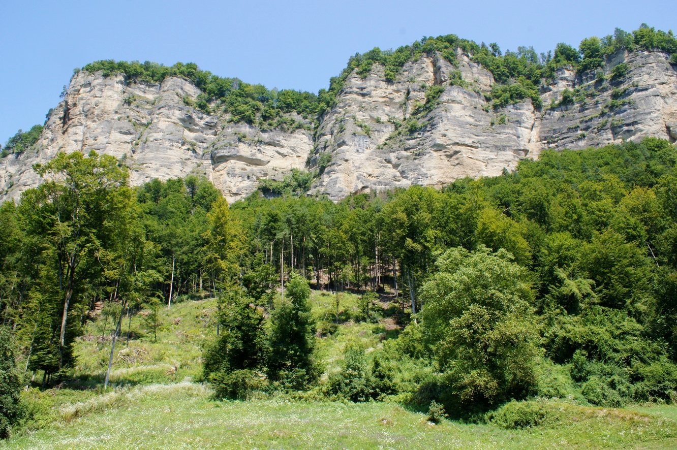 Blick von Süden auf die Steilwände der Sattnitz, hier von etwa 450 m auf 700 m ansteigend