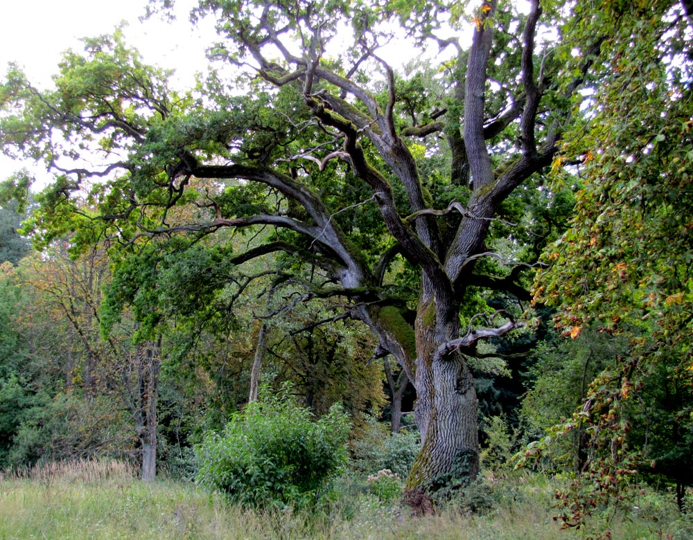 Gestern, 20. Sept. 2015, unternahmen wir einen Spaziergang in der Nähe von Darmstadt. Im Osten der Stadt erstrecken sich ausgedehnte Wälder, nahe der Fossilien-Fundstätte Grube Messel, unterbrochen durch meist feuchte Wiesen, mit kleinen Bachläufen und einzelnen Weihern. Teilweise sind es Naturschutzgebiete. Der Wald ist recht vielfältig gemischt, zeigt sich jetzt mit beginnender Laubfärbung. Häufig sind herrliche alte Eichen: