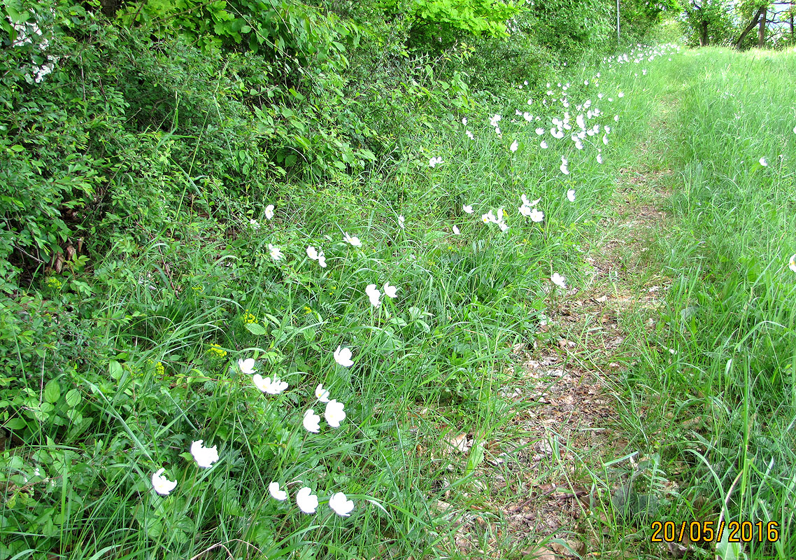 Die Waldanemone = „Großes Windröschen“, Anemone sylvestris, begleitet hier einen Waldsaum; ein hübscher Anblick!