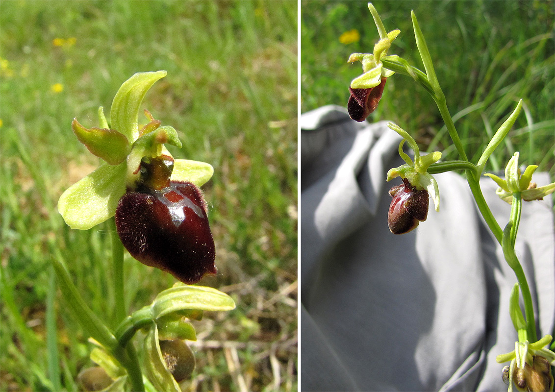 Die „Große Spinnen-Ragwurz“, Ophrys sphegodes) gehört zu den seltenen Arten. Manchmal ist es nützlich, für einen geeigneten Hintergrund