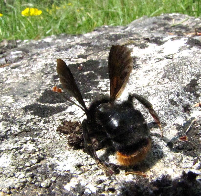 Am Wanderweg lag diese verendete Schmarotzerhummel, „Felsen-Kuckuckshummel“ Bombus (Psithyrus) rupestris. Kenntlich ist sie