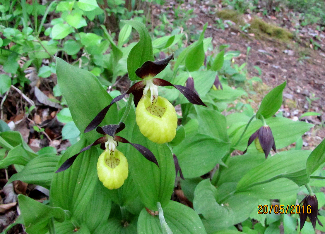 Der Frauenschuh (weitere deutsche Synonyme siehe Wikipedia), Cypripedium calceolus, ist der absolute Höhepunkt jeder Wanderung im Gebiet.