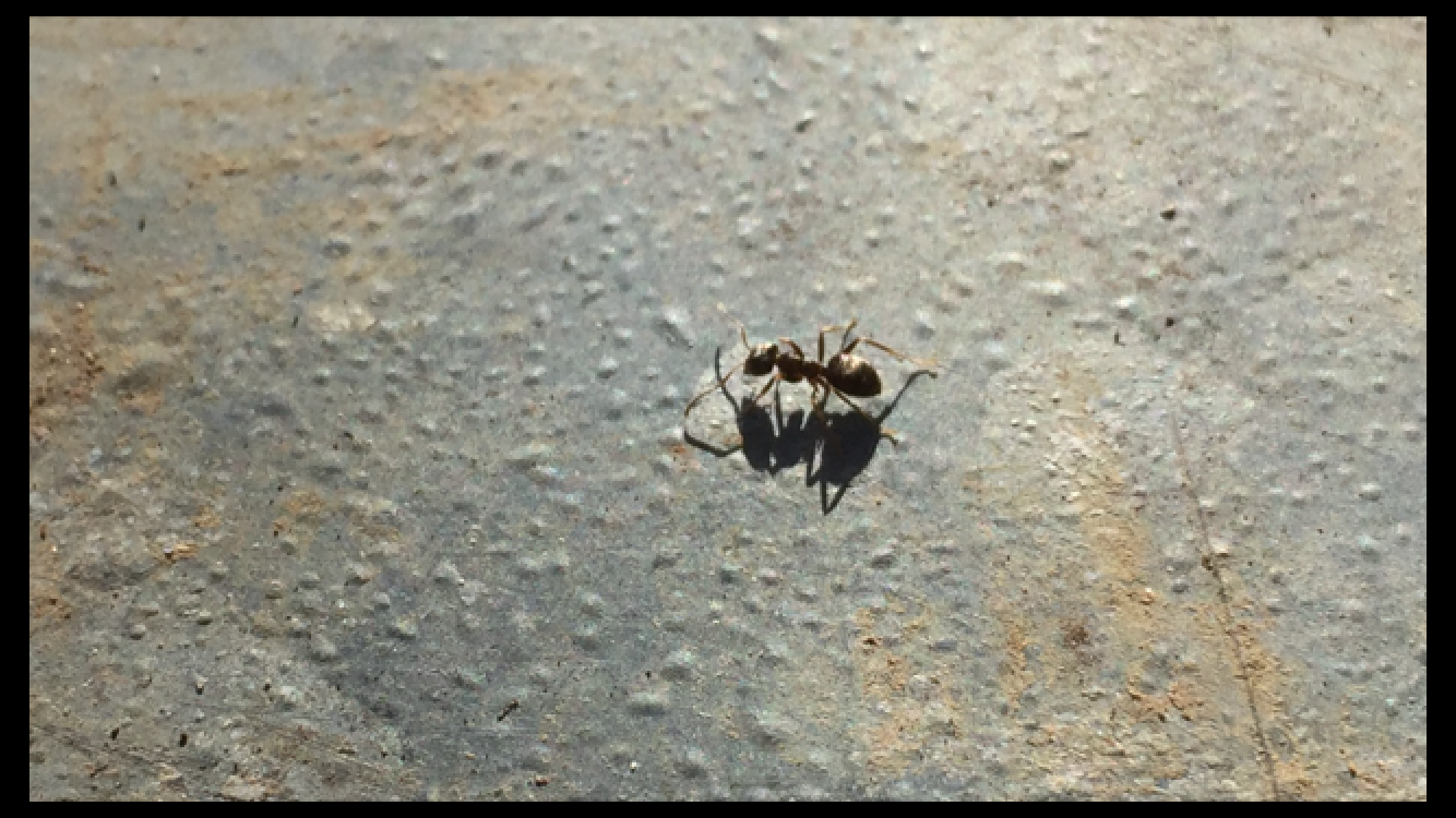 Formica fuscocinerea bei 12°C und guter Besonnung auf den Gehwegplatten im eigenen Garten unterwegs.
