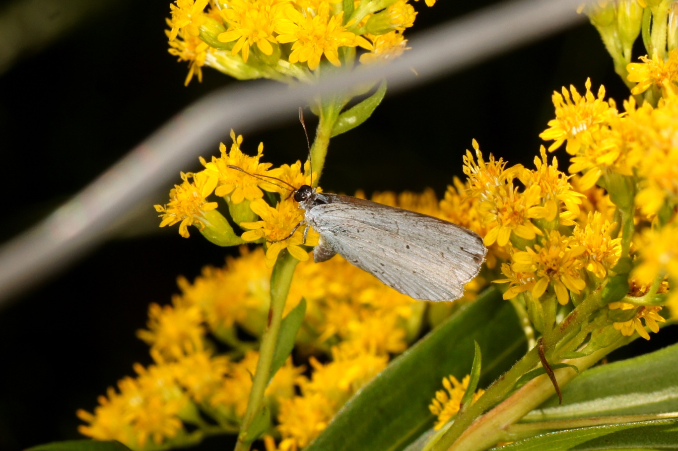 Ein Bläuling, leider konnte ich die Flügeloberseite nie sehen. Ich vermute den Faulbaumbläulig (Celastrina argiolu)
