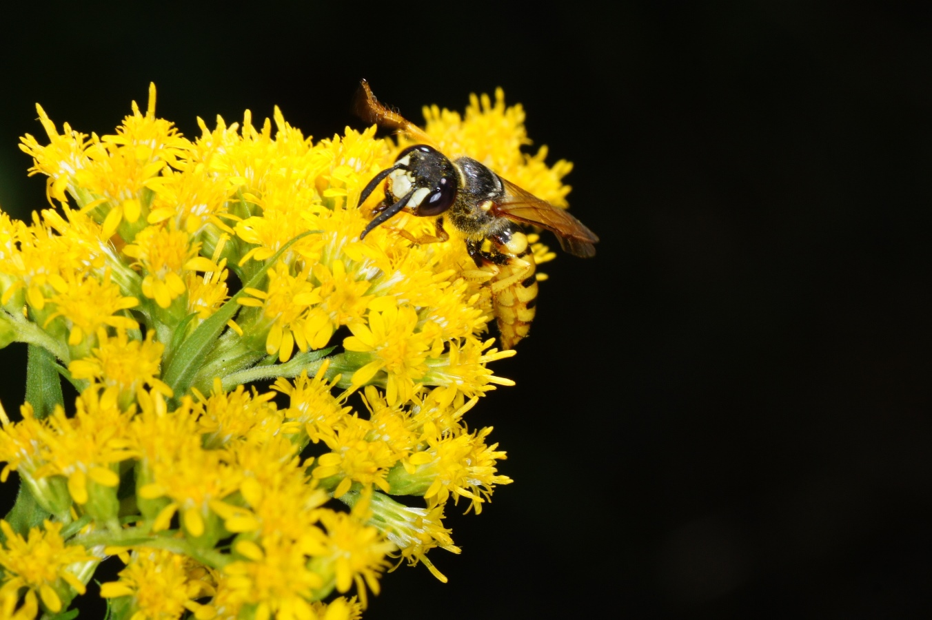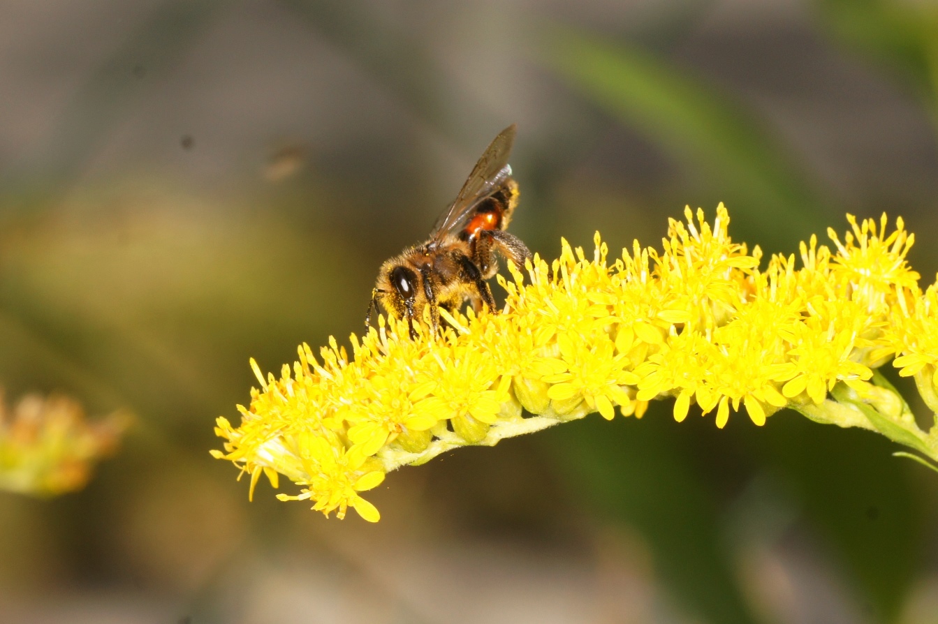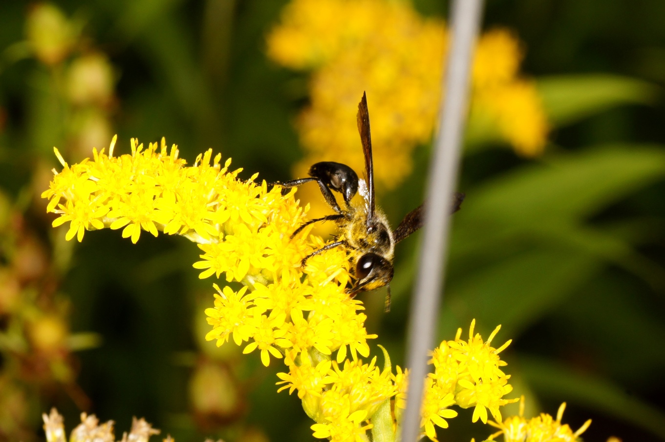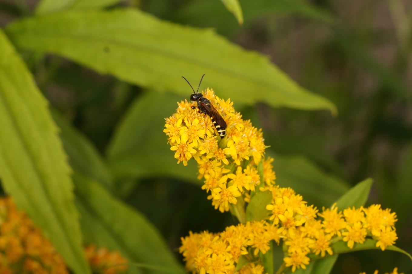 Inzwischen musste ich feststellen, dass die erstgenannte Solidago-Art, jene mit den büscheligen Blütenständen von den Insekten besser angenommen wird, als die jetzt aufblühende größere Art. Daher sind einige Insekten schlagartig verschwunden, wie z. B. die Dolchwespen. Jetzt muss ich auf einige ältere Fotos aus meiner Sammlung zurückgreifen!