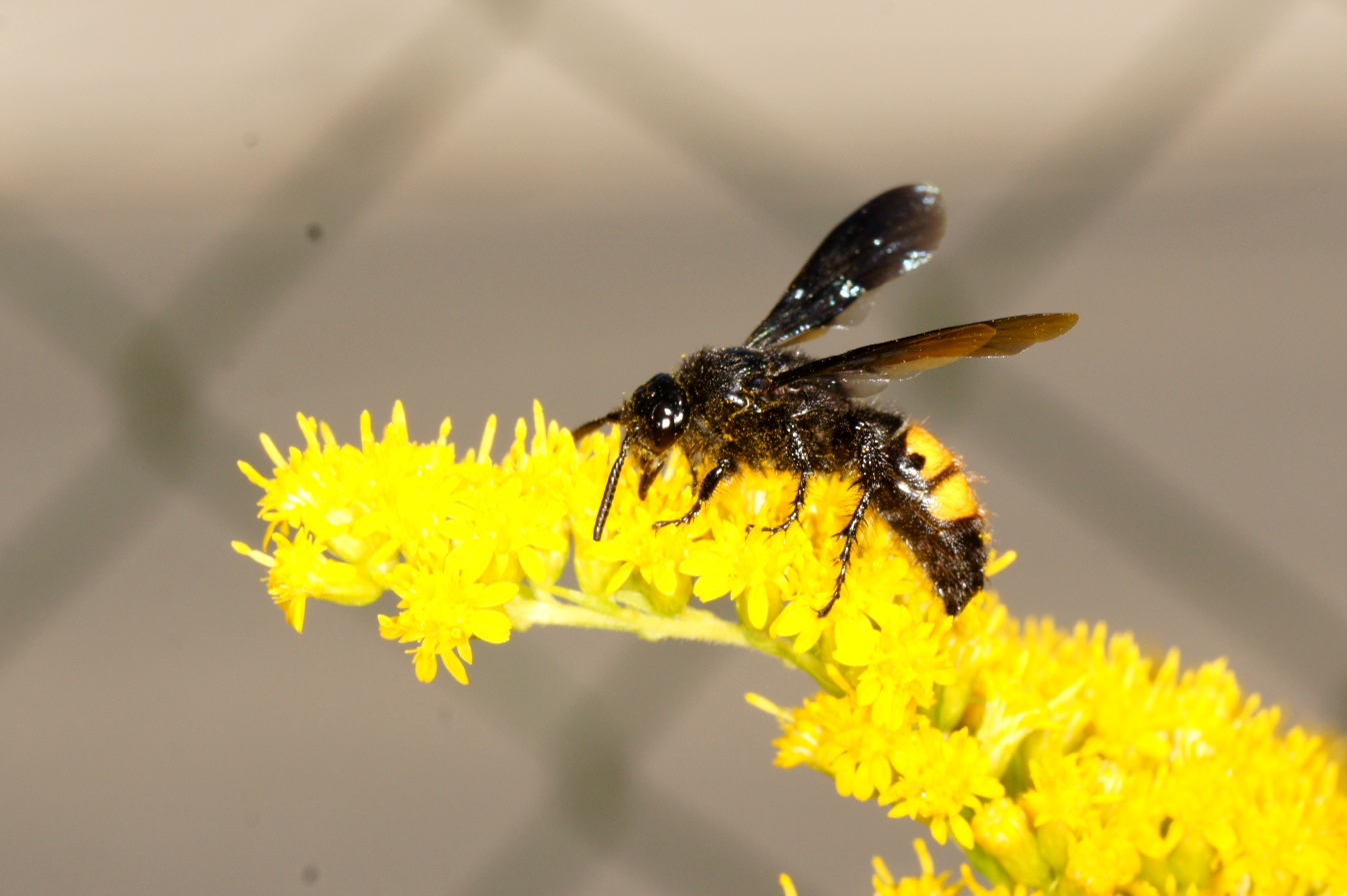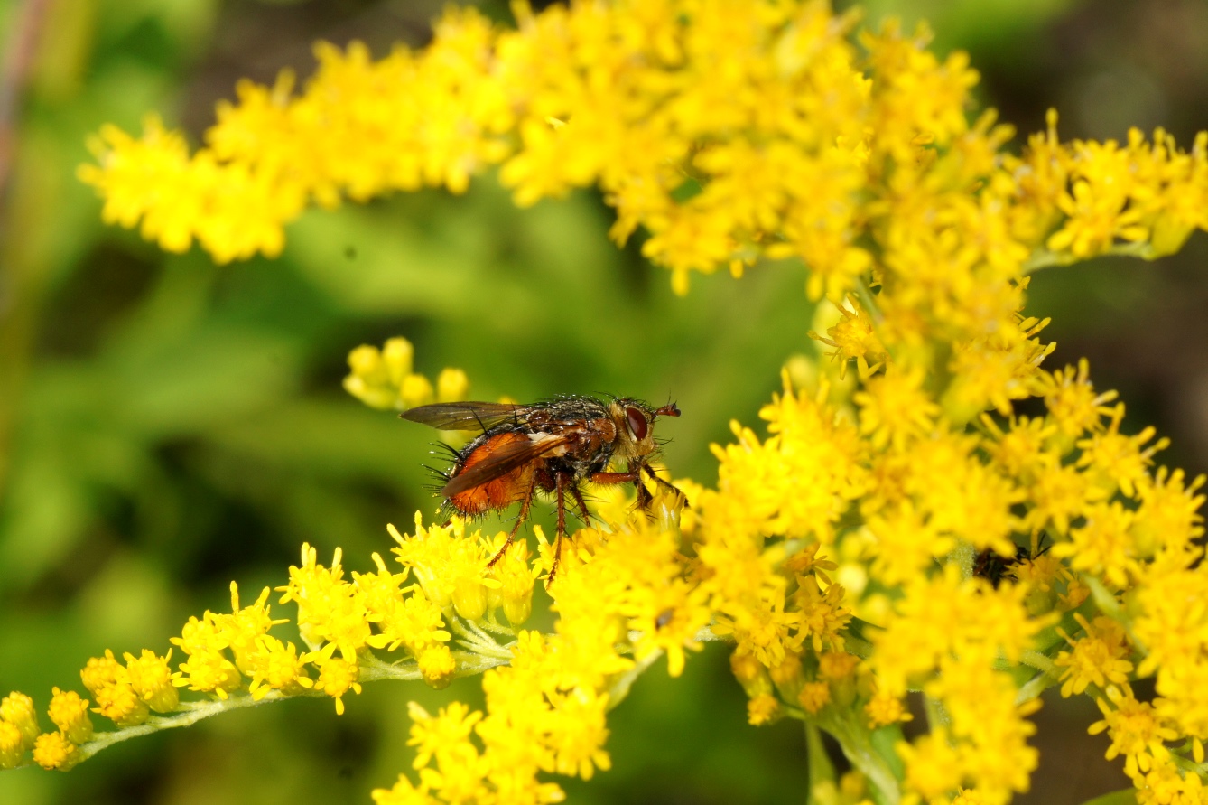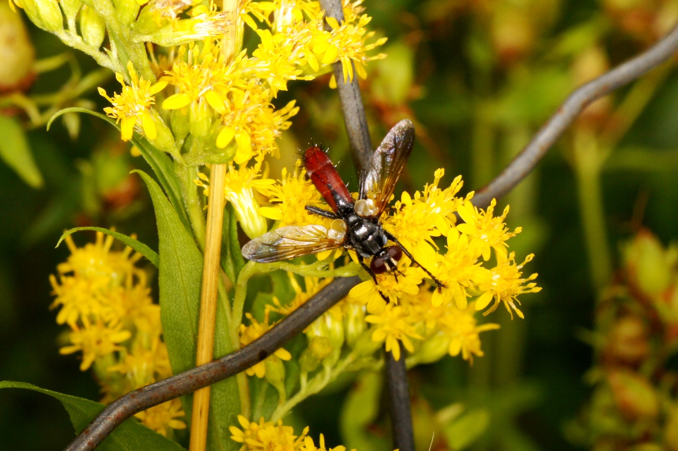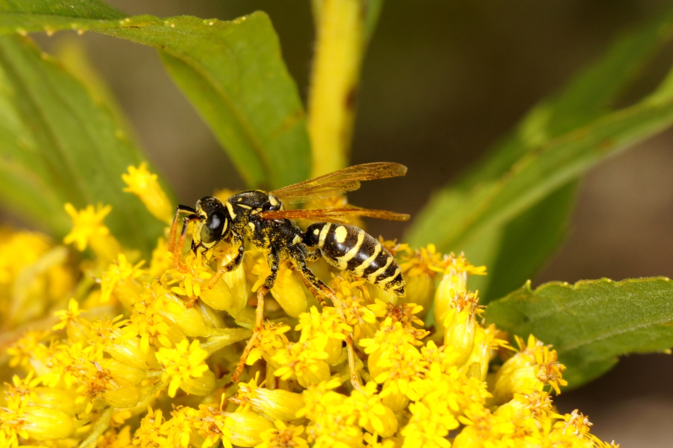 Inzwischen musste ich feststellen, dass die erstgenannte Solidago-Art, jene mit den büscheligen Blütenständen von den Insekten besser angenommen wird, als die jetzt aufblühende größere Art. Daher sind einige Insekten schlagartig verschwunden, wie z. B. die Dolchwespen. Jetzt muss ich auf einige ältere Fotos aus meiner Sammlung zurückgreifen!