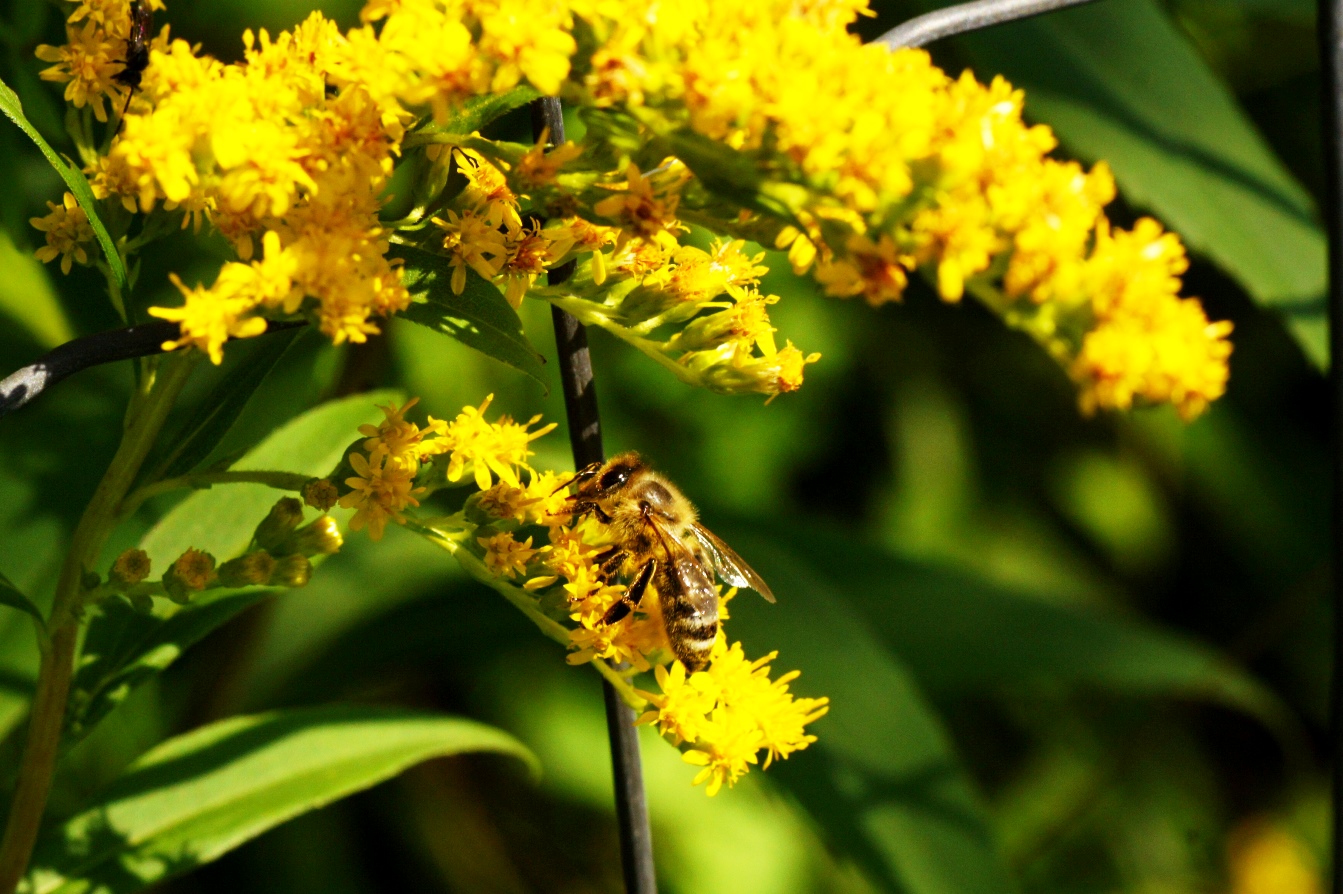 Goldruten, Solidago spp. blühen derzeit überall (außerhalb der urbanen Zone mit Englischem Rasen). Bei mir verblüht jetzt eine Art, eine zweite beginnt mit der Blüte. Ich habe sie nie angepflanzt, die Samen sind wohl zugeflogen. Die Goldruten gehören zu den Korbblütlern. Es gibt eine einheimische Goldrute (Solidago virgaurea) und etliche Hybriden aus der eingewanderten Kanadischen Goldrute (Solidago canadensis). Ich bevorzuge seit jeher gelbe Blüten, daher kam eine Entfernung der Pflanzen schon aus diesem Grunde nie in Frage. Ich habe zwei Arten (Varianten?) im Garten: