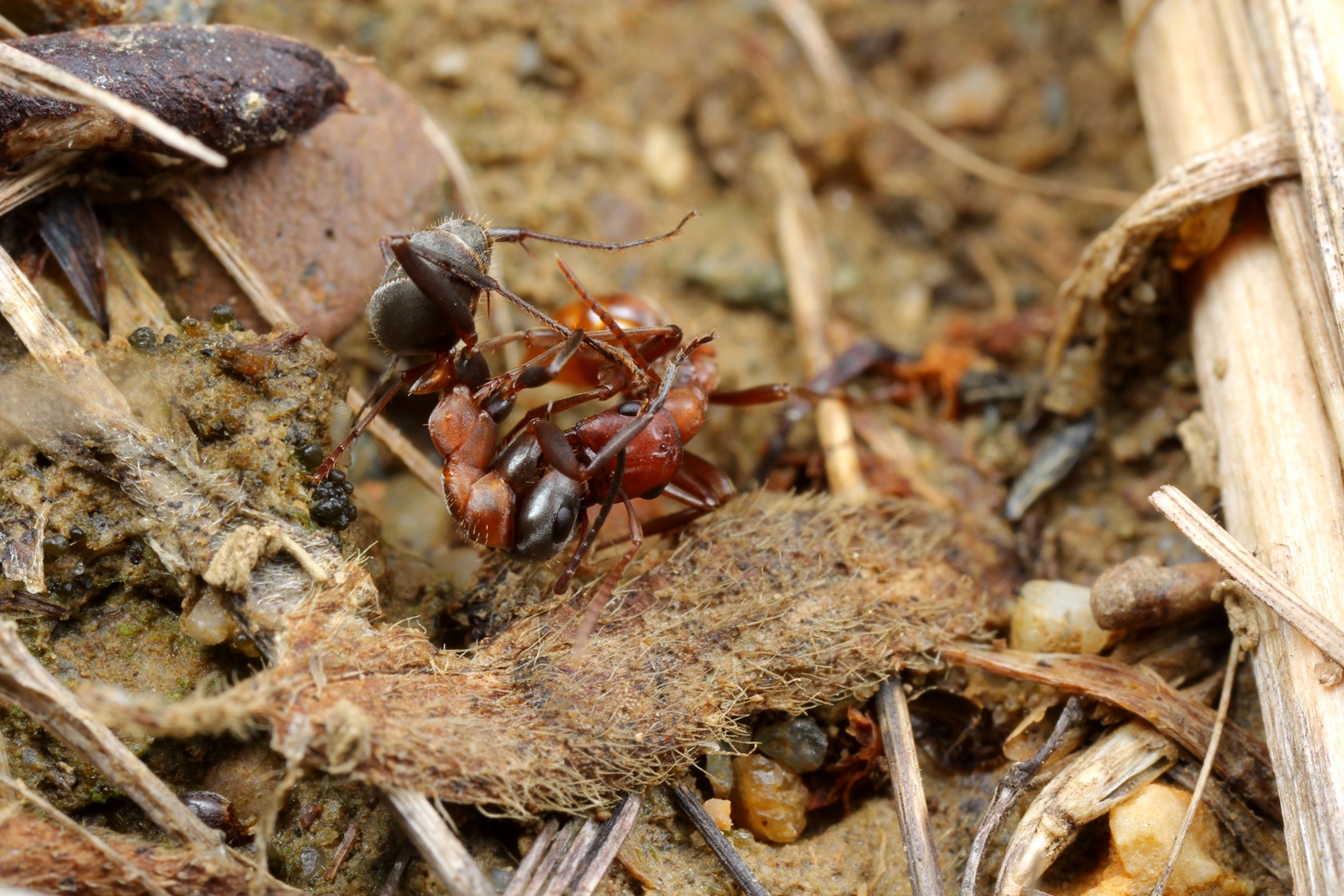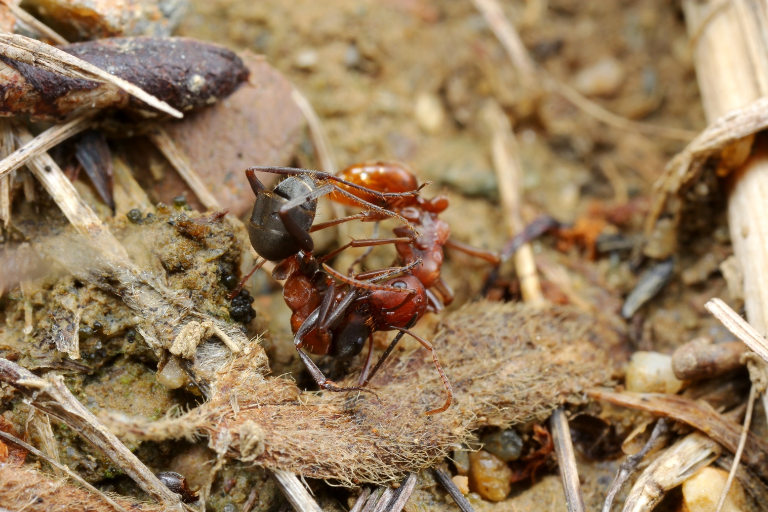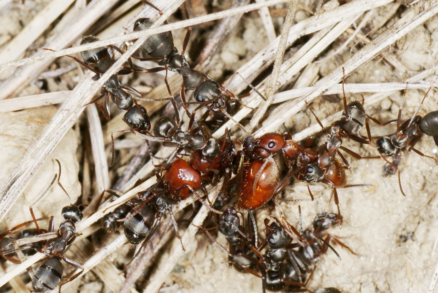 Keine Frage, dass die Amazonen gegen so kräftige und aggressive Gegner keine Chance haben. Außerdem ist es unwahrscheinlich, dass die Amazonen in der Lage sind die gut gepanzerte Kopfkapsel v. Raptiformica zu durchbohren. Noch weniger wirksam sind die säbelförmigen Mandibeln gegen andere große Ameisen: Eine Media-Arbeiterin von C. ligniperdus braucht für den Kampf gegen Polyergus 2 Bisse, ein Major nur einen Biss um zu töten. Schon ein paar Mal gesehen!