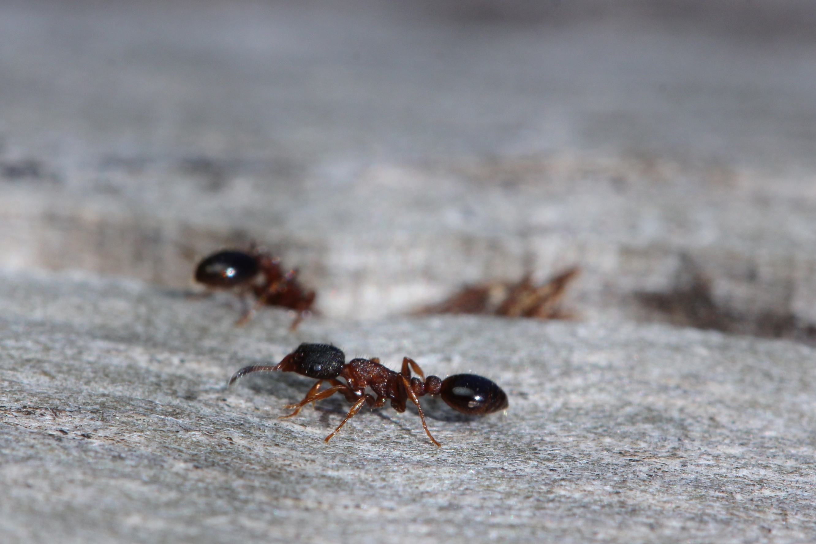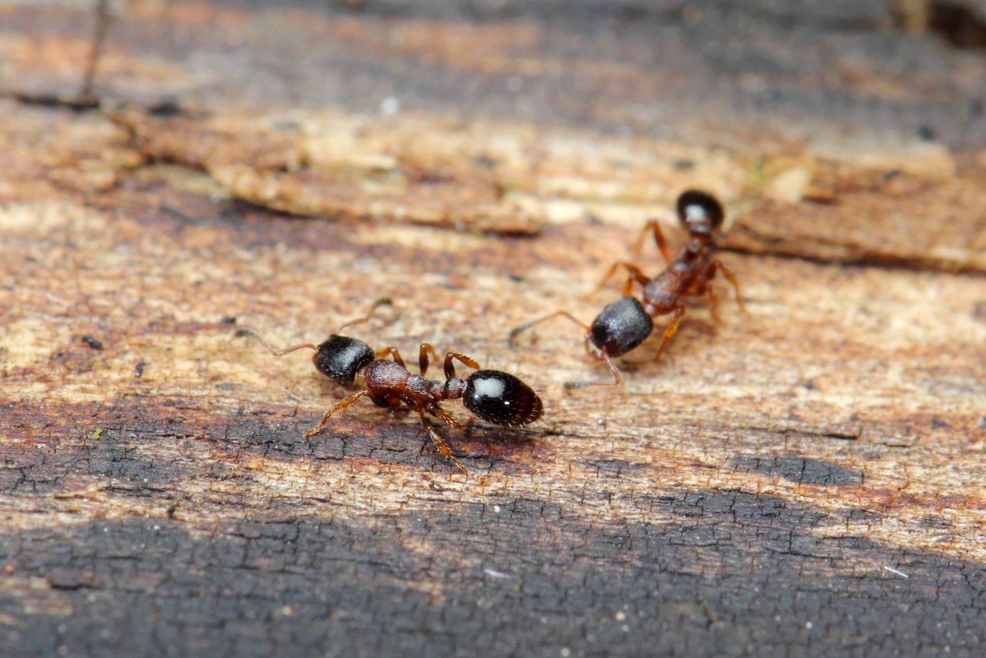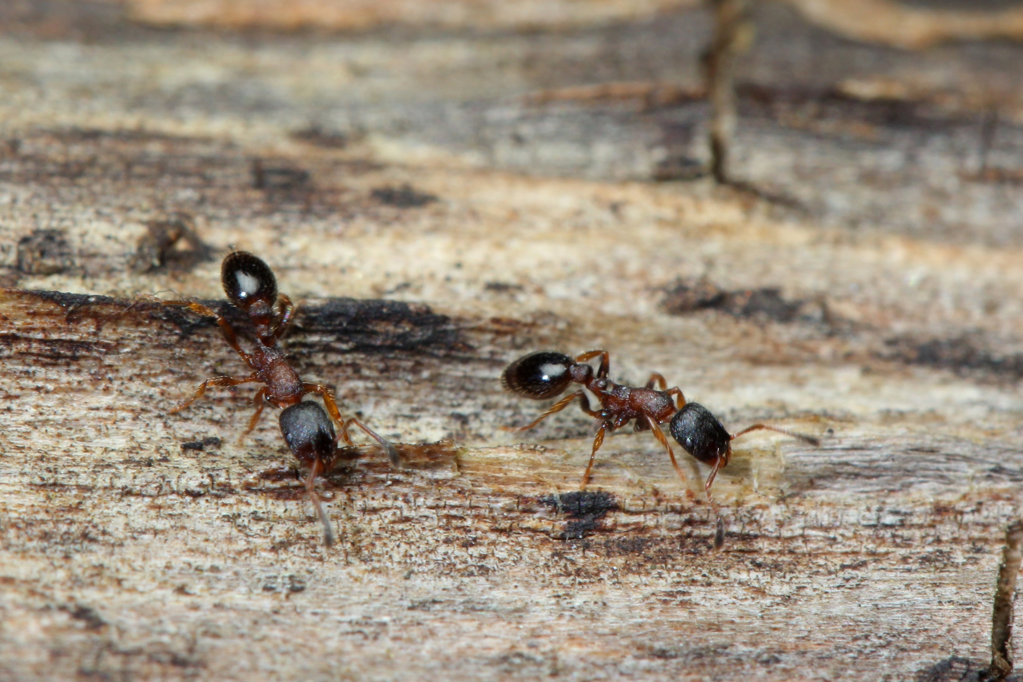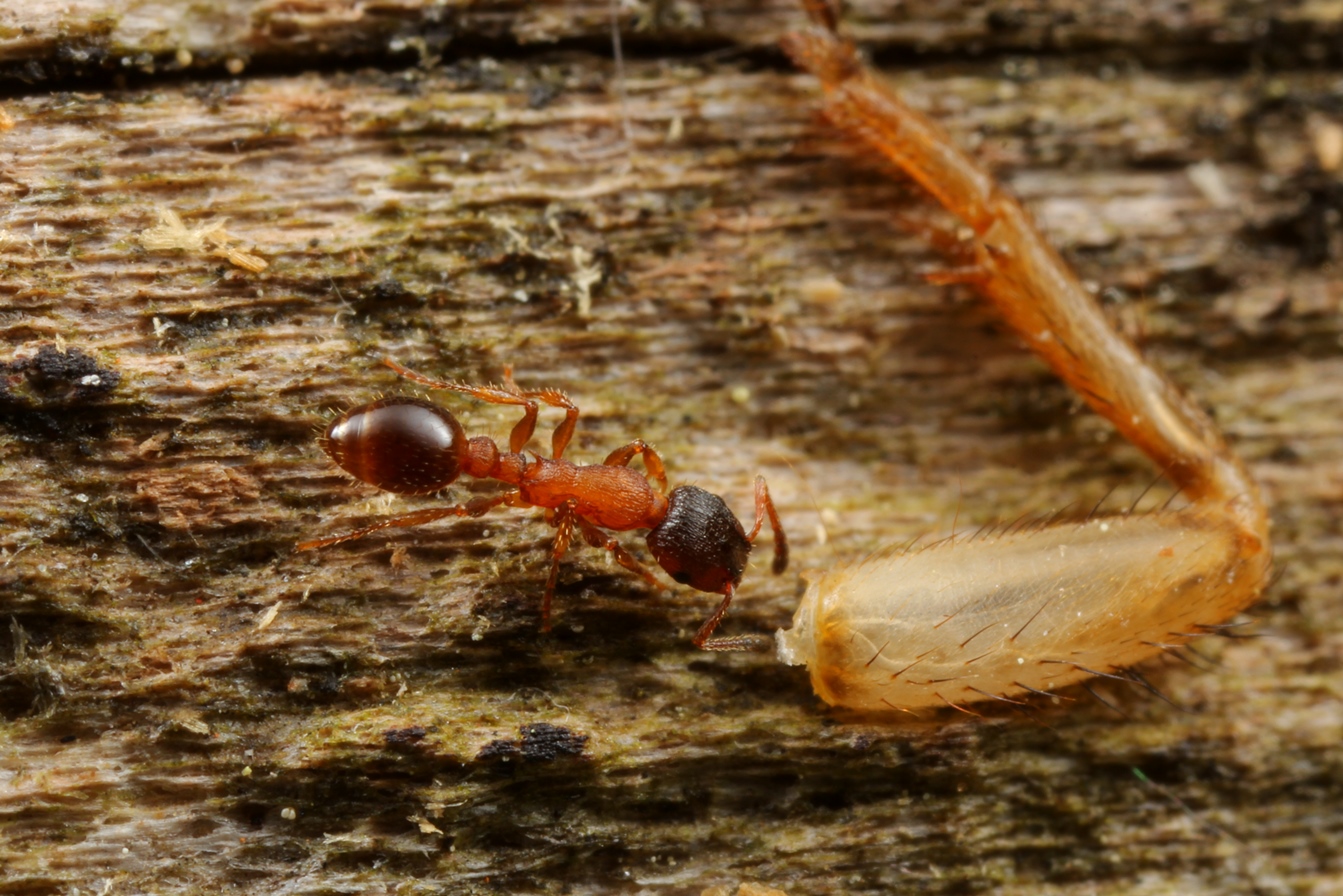 Die Unterscheidung der Gattungen Leptothorax u. Temnothorax lässt sich ganz gut an der Anzahl der Fühlerglieder festmachen: Leptothorax 11, Temnothorax 12 Glieder. Leptothorax acervorum, auch als Große Schmalbrustameise bezeichnet, kommt in unterschiedlichen Habitaten vor. Die Nester werden vorwiegend in liegendem Totholz errichtet. Ich konnte ein einziges Mal ein Nest in etwa 2 m Höhe in einem stehenden, abgestorbenen Obstbaum entdecken. Für Schmalbrustameisen ist die Art groß (Arbeiterinnen bis 4 mm Länge) und kann sich recht schnell bewegen. Es gibt mono- u. polygyne Nester. Die Art gilt als ausgesprochen frosthart (SEIFERT S. 223).