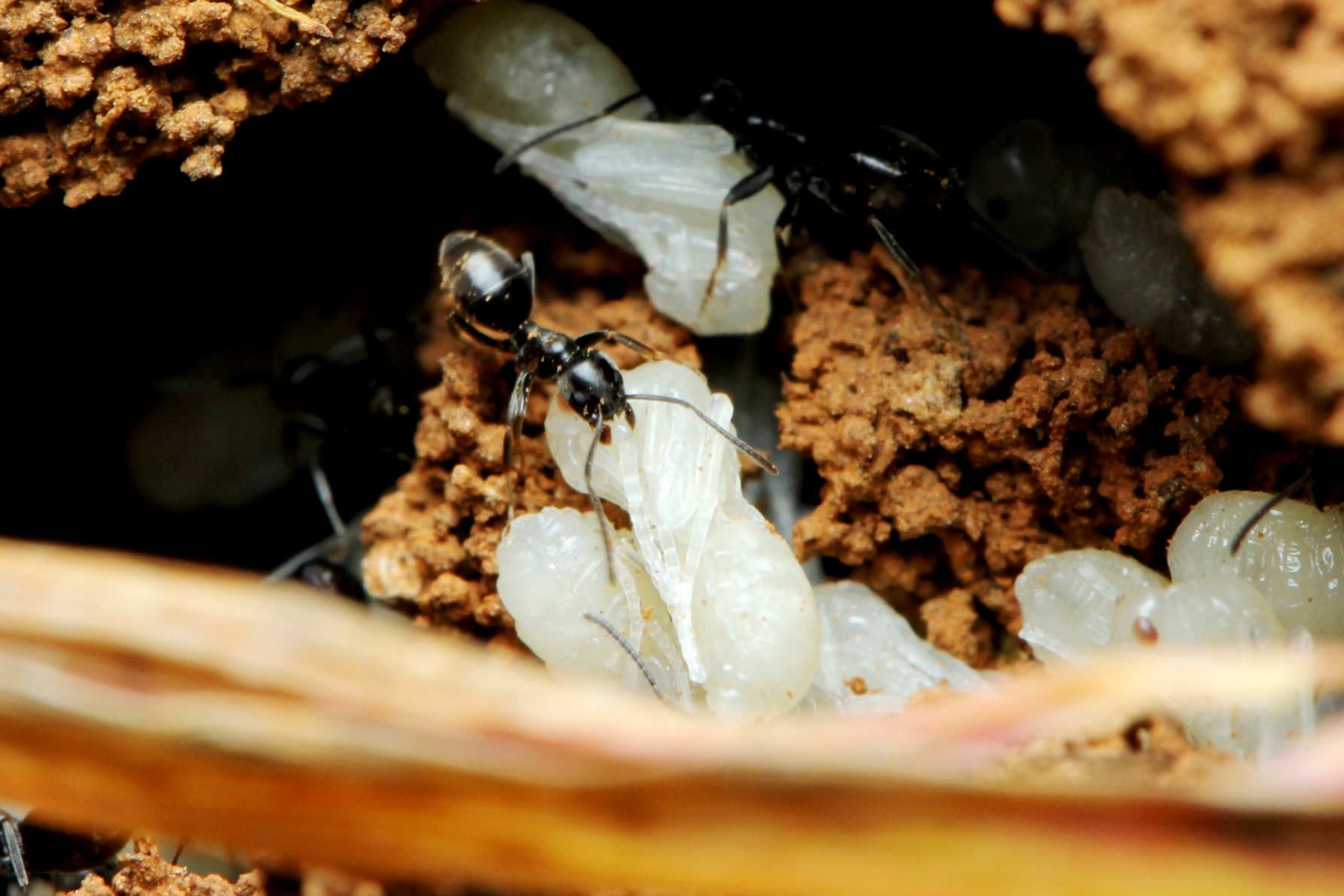 Tapinoma subboreale gehört auch zu den "Frühaufstehern" im Reich der Ameisenfauna: 2007 gab es einen ausgesprochen milden Spätwinter, etwa Mitte Februar entdeckte ich diese Tapinoma-Schar unter einem von der Sonne etwas erwärmten Stein. 2 Tage später gab es bereits Eierpakete.