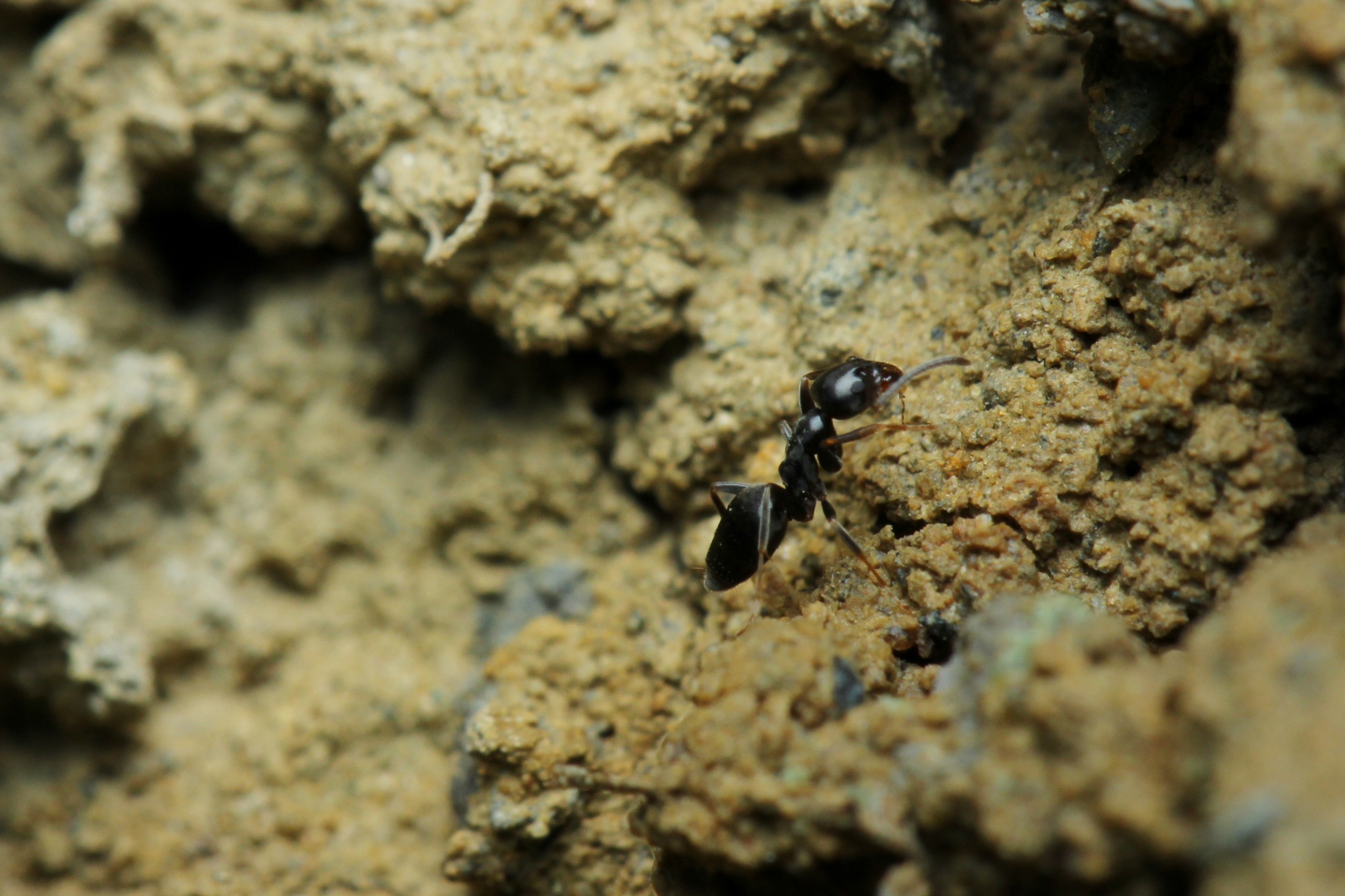 Hier wird eine Beute erspäht: Eine tote Myrmica sp.