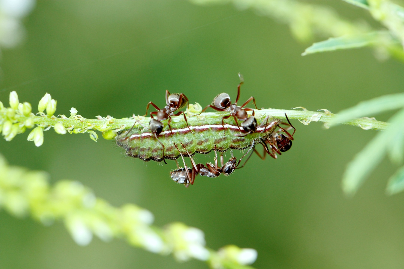 Ob die Raupe aus dieser Beziehung auch einen Vorteil ableitet und man daher von einer Symbiose zwischen Schmetterlingsraupe und Ameise sprechen kann, ist wegen der kurzen Beobachtung ungewiss. Formica fuscocinerea ist jedenfalls eine aggressive und recht wehrhafte Art. Ich konnte bisher F. fuscocinerea noch nie in Trophobiose mit Schmetterlingsraupen beobachten. Die Fotos zeigen hier die rötliche Farbmorphe, eine Farbvariante, die bei uns relativ häufig zu sehen ist.