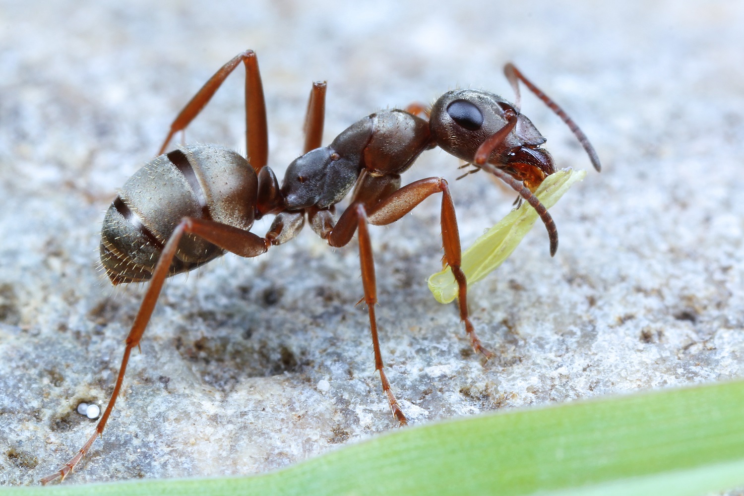 Im Einzelkampf ist Manica rubida meist überlegen, aber: eine F. fuscocinerea kommt selten allein! Ihr verspritzes Gift alarmiert Kolleginnen in einer Entfernung bis 50 cm, die sofort zu Hilfe eilen!