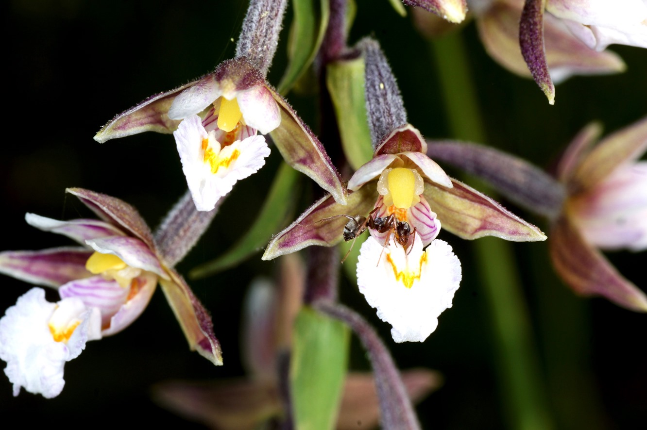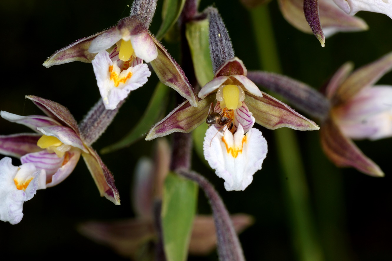 Wie viele Ameisenarten nützt auch F. fuscocinerea florale Nektarien. Im Sommer fand ich einen größeren Bestand der Sumpf-Ständelwurz (Epipactis palustris). Auf zahlreichen Blüten konnte ich Arbeiterinnen der Art beobachten, wie sie den Nektar der Blüten aufnahmen; ob es dabei auch zur Bestäubung kam, war nicht festzustellen. Wunderschöne Blüten übrigens, deren Anblick ein wenig Freude in die langsam grauer werdene Jahreszeit bringen soll.