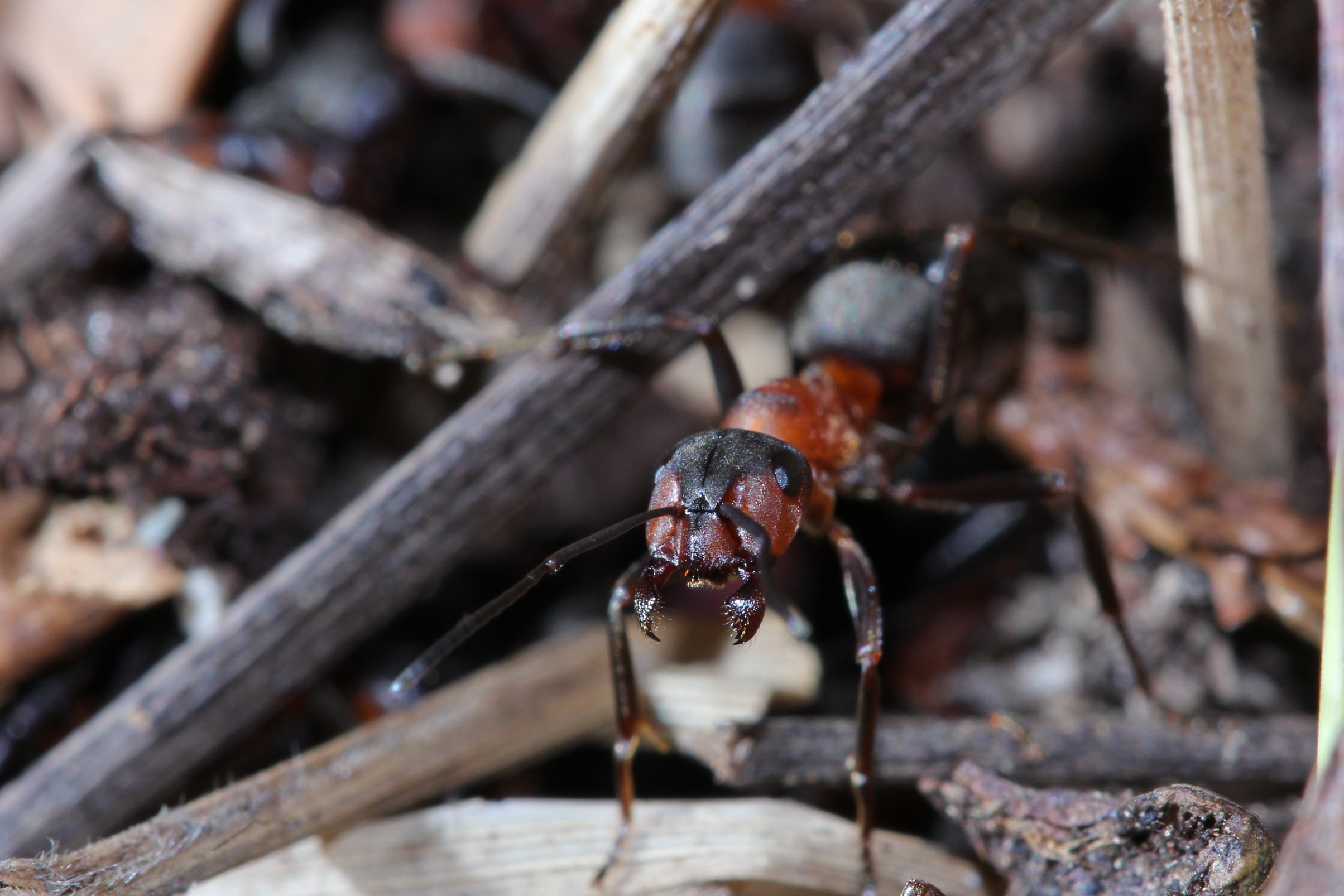 Hier 2 Bilder einer Formica rufa. Die sonst deutlicher ausgeprägten dunklen Flecken auf dem Pronotum/Mesonotum sind bei diesem Exemplar nur minimal vorhanden! (Fotograf Sohn Roman)