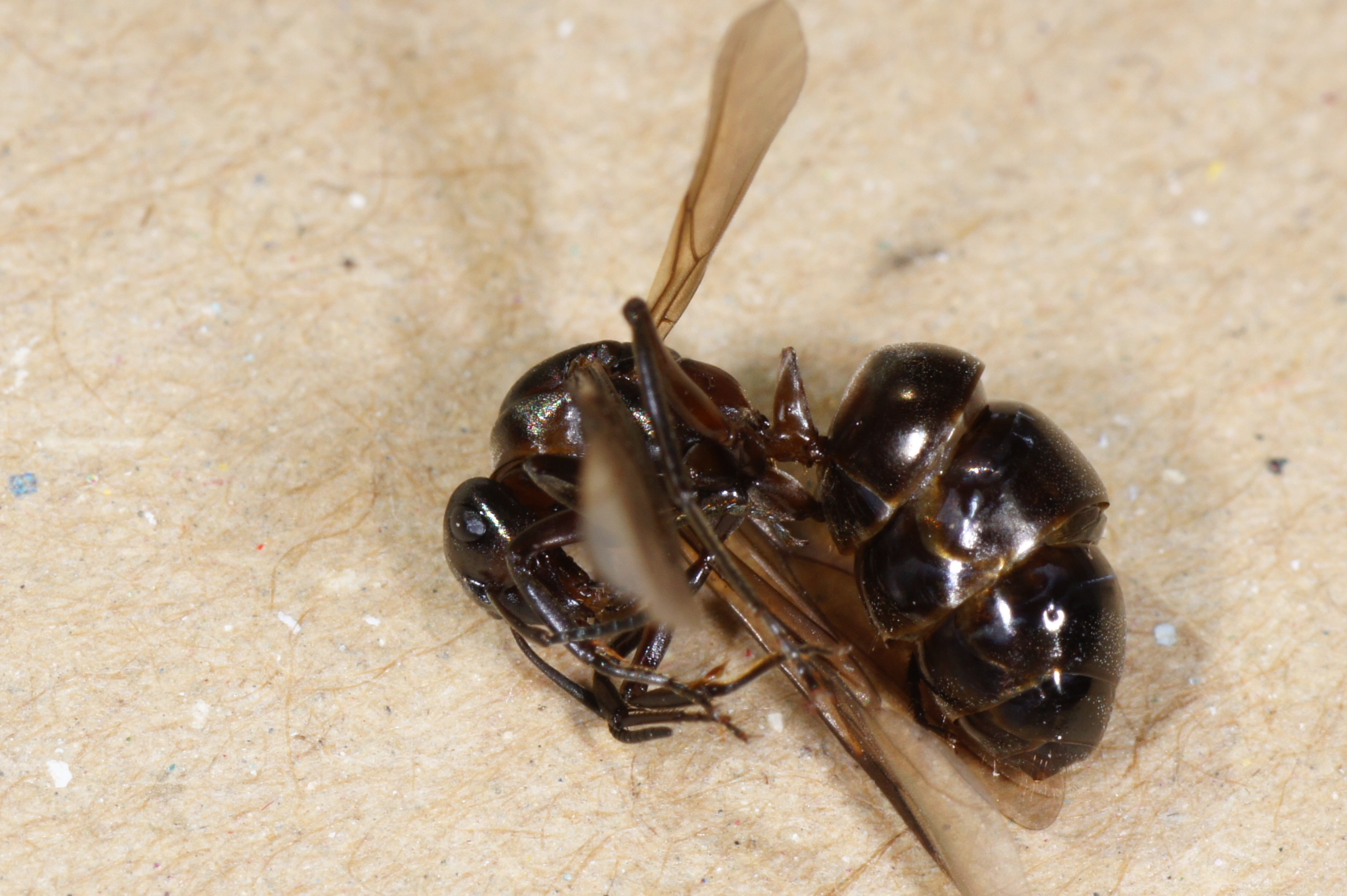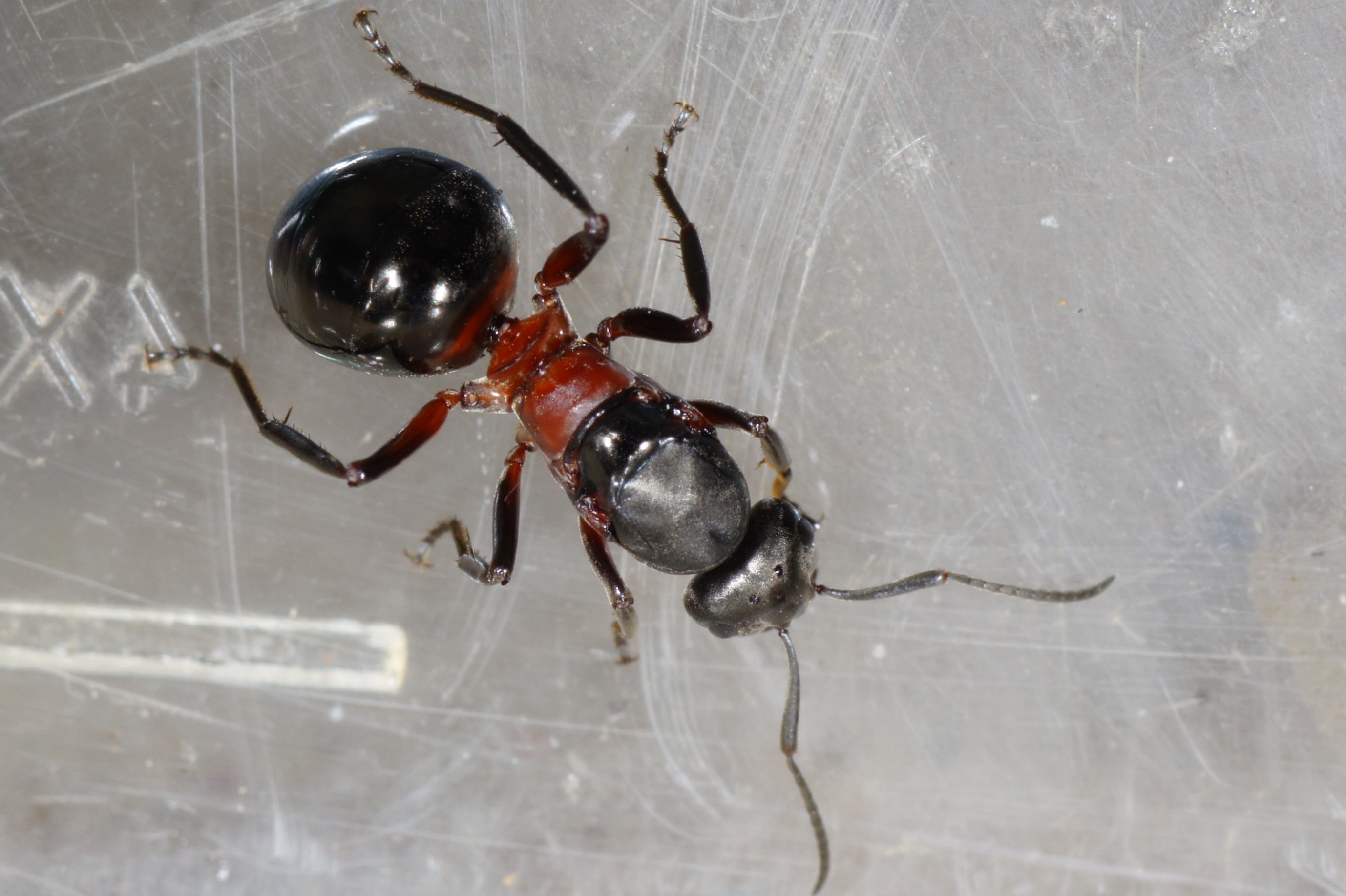 Dunkle Farbvarianten kommen bei einigen Formica s. str. vor. Im Mai hat Sohn Roman von einer zoologischen Exkursion eine auffallend dunkel gefärbte Gyne mitgebracht; zwecks Bestimmung musste sie in Alkohol konserviert werden. Nach eingehender Betrachtung unter dem Bino tendierte ich zu F. polyctena, aber F. uralensis konnte ich nicht ausschließen, der Schlüssel v. SEIFERT hätte auch diese Möglichkeit offen gelassen. Letztere wäre eine zoogeografische Sensation gewesen, denn im südl. Mitteleuropa gibt es meines Wissens nur in der Schweiz ein Reliktvorkommen, welches angeblich verschollen ist, in Öster. ist die Art bisher nicht gefunden worden.