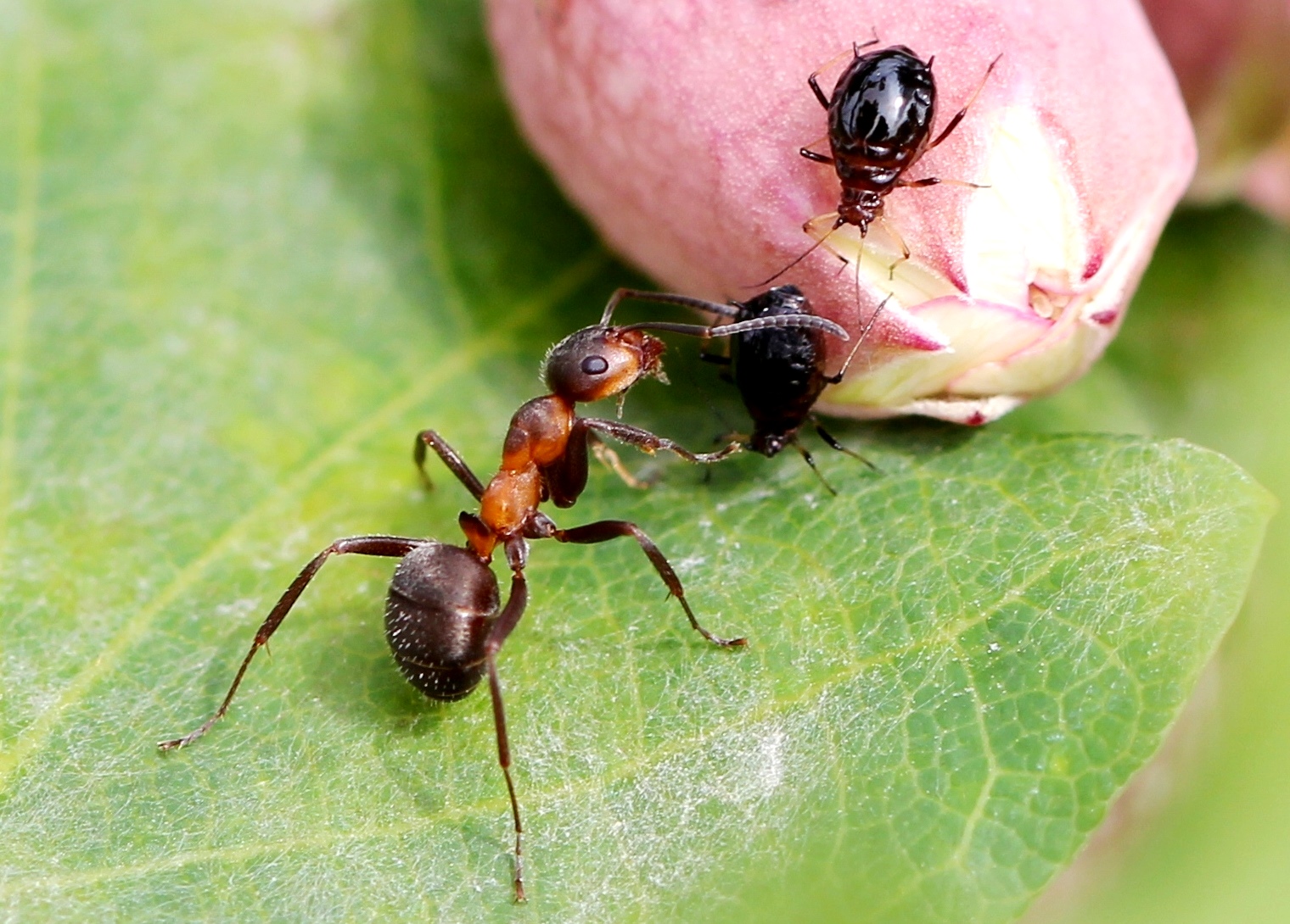 Der Mensch hält Nutzvieh, die Ameisen (hier F. rufa) halten Nutzvieh.......