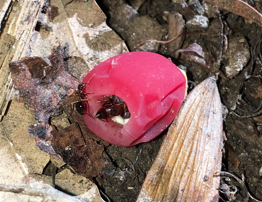 zum Einen sollte erwähnt werden, dass Eibenfrüchte - s. Abbildungen oben bzw. Abbildung im Seifert (2007) - sicher nicht zur Hauptnahrungsquelle herangezogen werden. P. nitens Nester befinden sich (hier in Wien) vorwiegend in der Nähe von Laubbäumen, v.a. unter Ahorn, Rosskastanie und Walnussbaum, aber auch unter Feldahorn und Esche. Da die Ameisen auch in Parkanlagen vorkommen, wo hin und wieder mal Eiben vorkommen, kann man die Arbeiterinnen an den Eibenfrüchten bei der Nahrungsaufnahme beobachten. Ich habe noch keine Nester unter Linden, Platanen oder Birken gefunden.