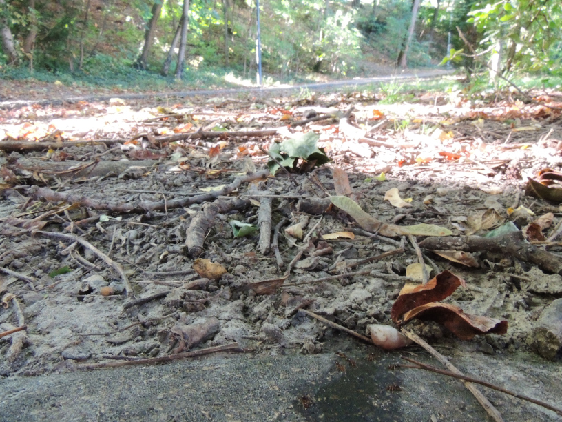 Obwohl die Nester meist schattig liegen, kann man hier in Wien P. nitens Nester auch unter Ahorm Bäumen in Grünstreifen neben Strassen finden.