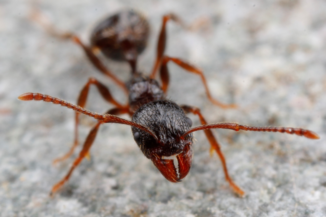 Aphaenogaster sp. aus Nova Vas/Istrien. In Kroatien kommen mehrere Aphaenogaster-Arten vor [Bracko G. (2006): Review of the ant fauna (Hymenoptera: Formicidae) of Croatia]; auch die bei uns heimische A. subterranea, die man auf den ersten Blick mit einer Myrmica-Art verwechseln könnte. Aber hier handelt es sich um eine fast schwarz gefärbte Art. Ich dachte zuerst an A. gibbosa od. A. italica, die kommen aber lt. obiger Checkliste in Istrien/Kroatien nicht vor. Am ehesten handelt es sich um Aphaenogaster cf. epirotes, die für Istrien mehrfach nachgewiesen ist, ihr Hauptverbreitungsgebiet aber offensichtlich in Griechenland hat. Fotos: Roman Borovsky