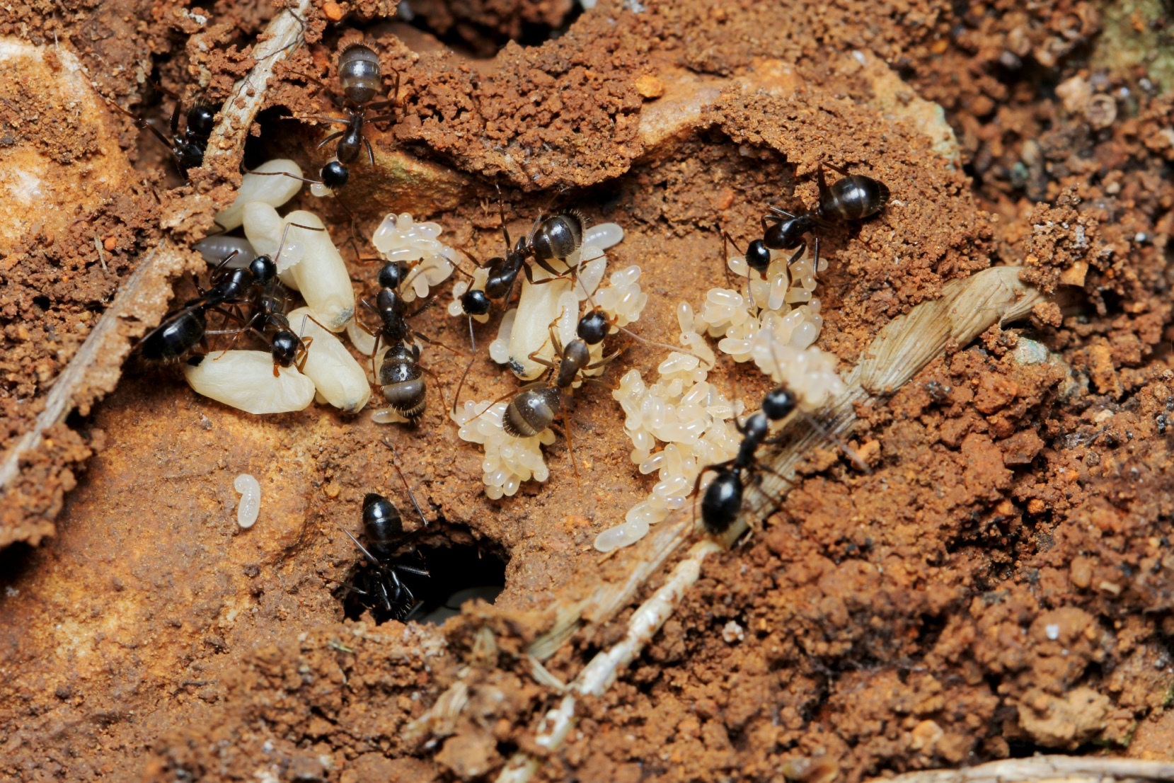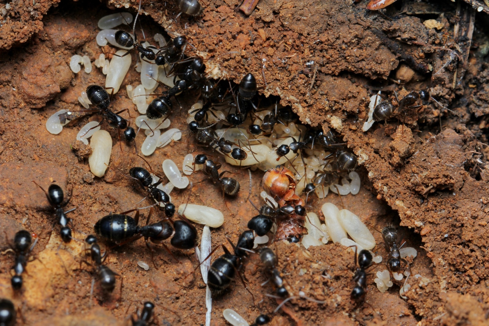 Bei der Nestöffnung kamen unabsichtlich Pheidole pallidula ins "Gehege".