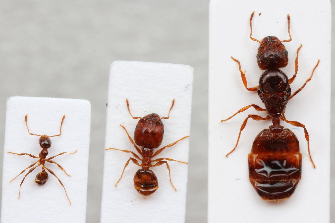 Pheidole pallidula ist eine mediterrane Art, die sich nach Einschleppung od. Freisetzung stellenweise auch im Rheinland etabliert hat. Das natürliche Verbreitungsgebiet reicht bis in die Südalpen, z. B. in Südtirol oder im Tessin. Sie gehört zur Unterfamilie der Knotenameisen (Myrmicinae), besitzt aber keinen Stachel mehr. Dieser wurde im Laufe der Evolution zurückgebildet, möglicherweise zeitgleich mit der Entwicklung einer echten Soldatenkaste. Die Arbeiterinnen sind klein, meist zw. 2 und 2,5 mm lang, die Soldaten können gute 5 mm erreichen. Das Farbspektrum reicht von rotgelb bis braun. Die Königin ist 7-8 mm lang und in der Regel braun. Die Männchen sind braun-schwarz.