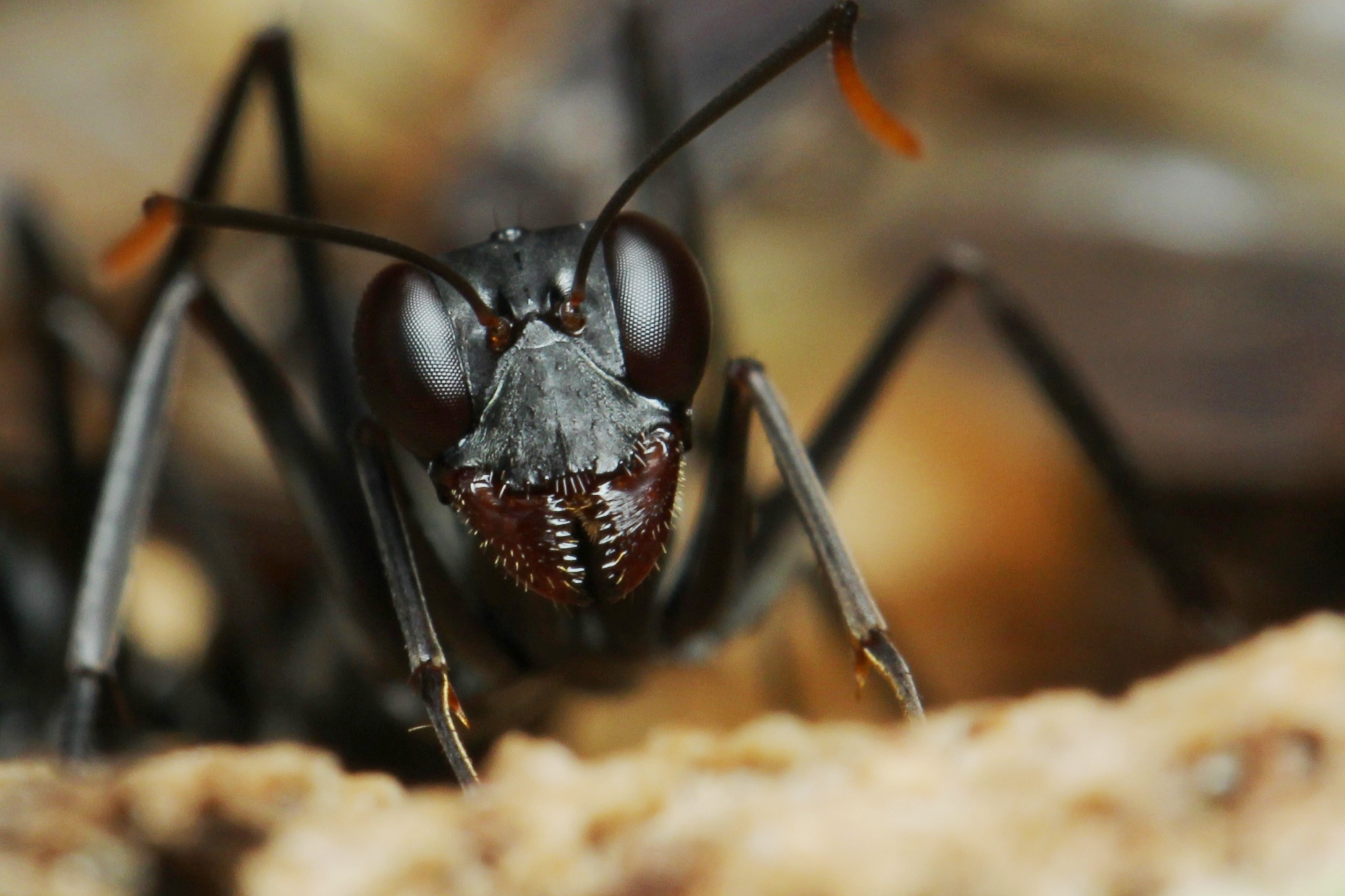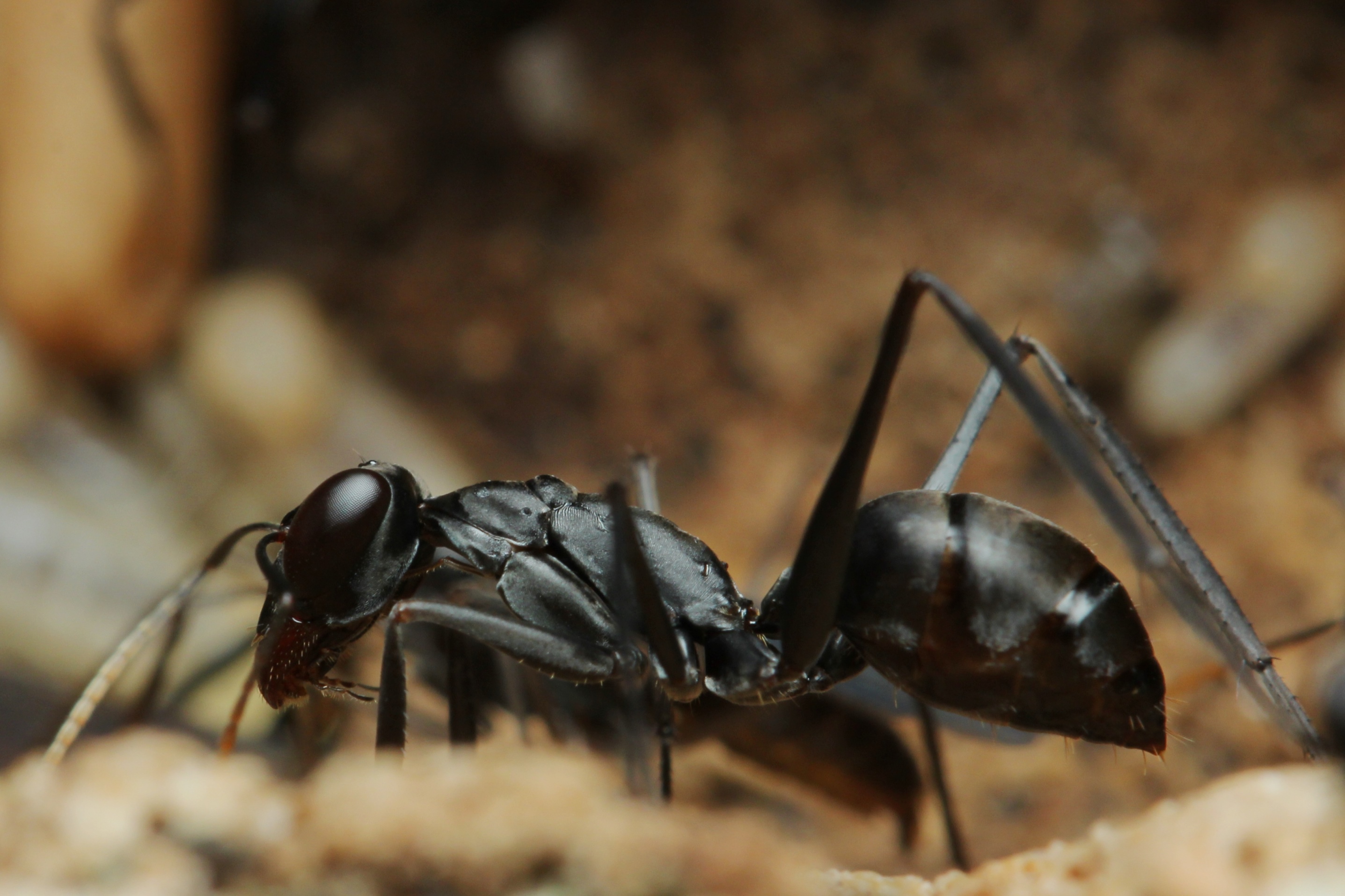 Lt. Alex Wild ist Gigantiops destructor die Ameisenart mit den größten Augen. Tatsächlich erkennt man sofort, dass die Größe der Augen mit jenen v. Wespen und Bienen etwa vergleichbar ist. Daraus folgt die berechtigte Vermutung, dass sie im Reich der Ameisen über einen sehr guten Sehsinn verfügen müssten. Die Übersetzung des Namens bedeutet etwa "Großäugiger Zerstörer", was sie aber zerstören, wurde mir nicht klar. Ich hatte bisher nie außereuropäische Arten gehalten, aber ich bekam sie 2009 (wenn ich mich nicht irre) als Geschenk und habe sie dementsprechend wertschätzend behandelt.