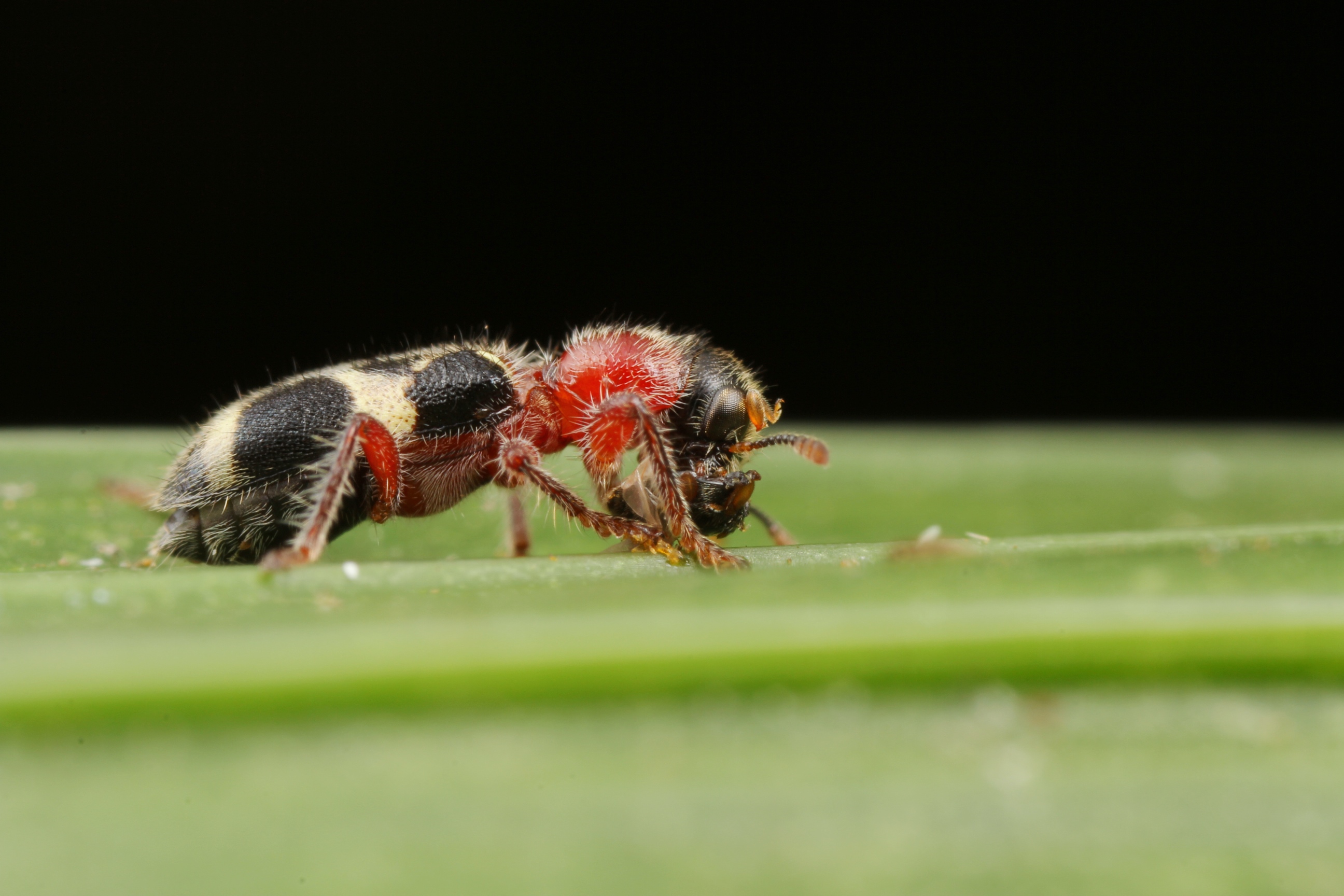Der Käfer (Bild4) erinnert mich an einen einheimischen, den „Ameisen-Buntkäfer“ Thanasimus formicarius.