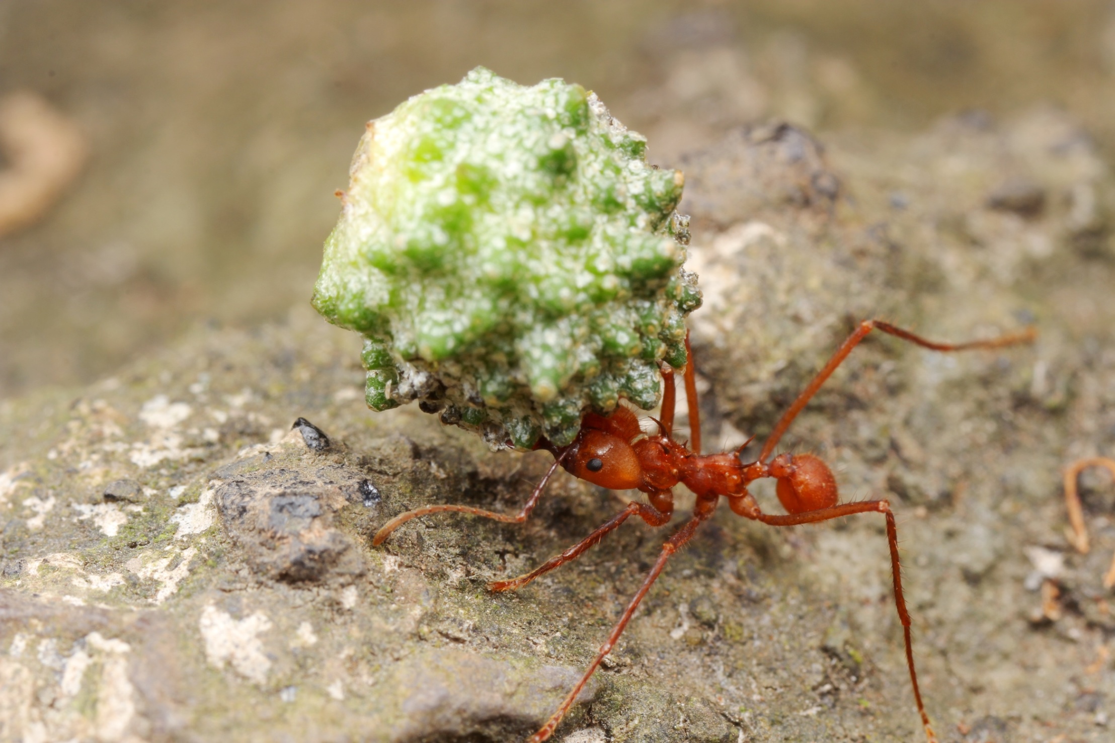 #25: Acromyrmex cf. volcanus. Alle 3 Atta dort haben wenig dornige Köpfe und +/- glatte Gaster (allgemein für Atta gültig).