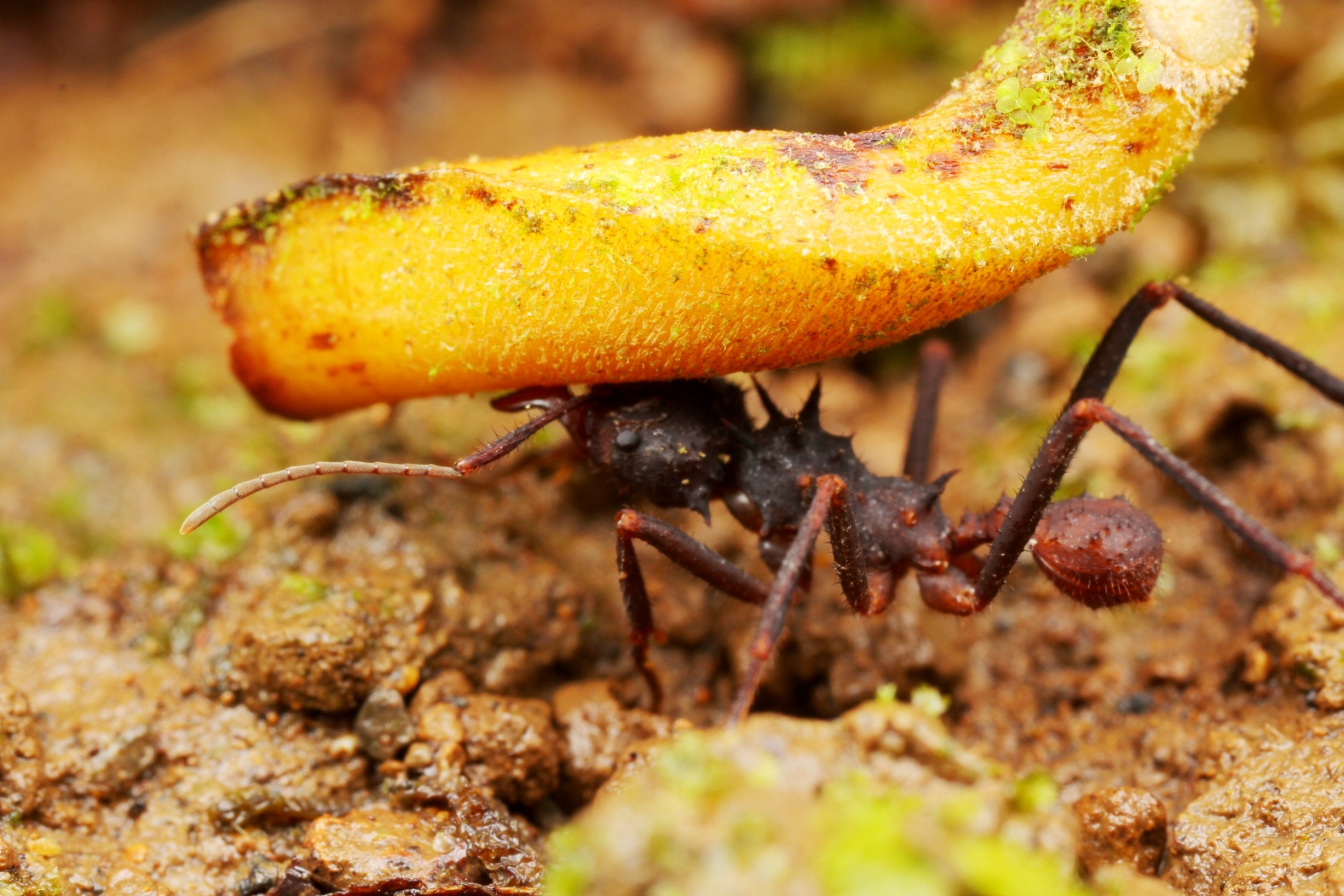 #27: Das ist Paraponera clavata; gelbe Vordertarsen. Sie trägt gerne flüssige Nahrung zwischen den Mandibeln.