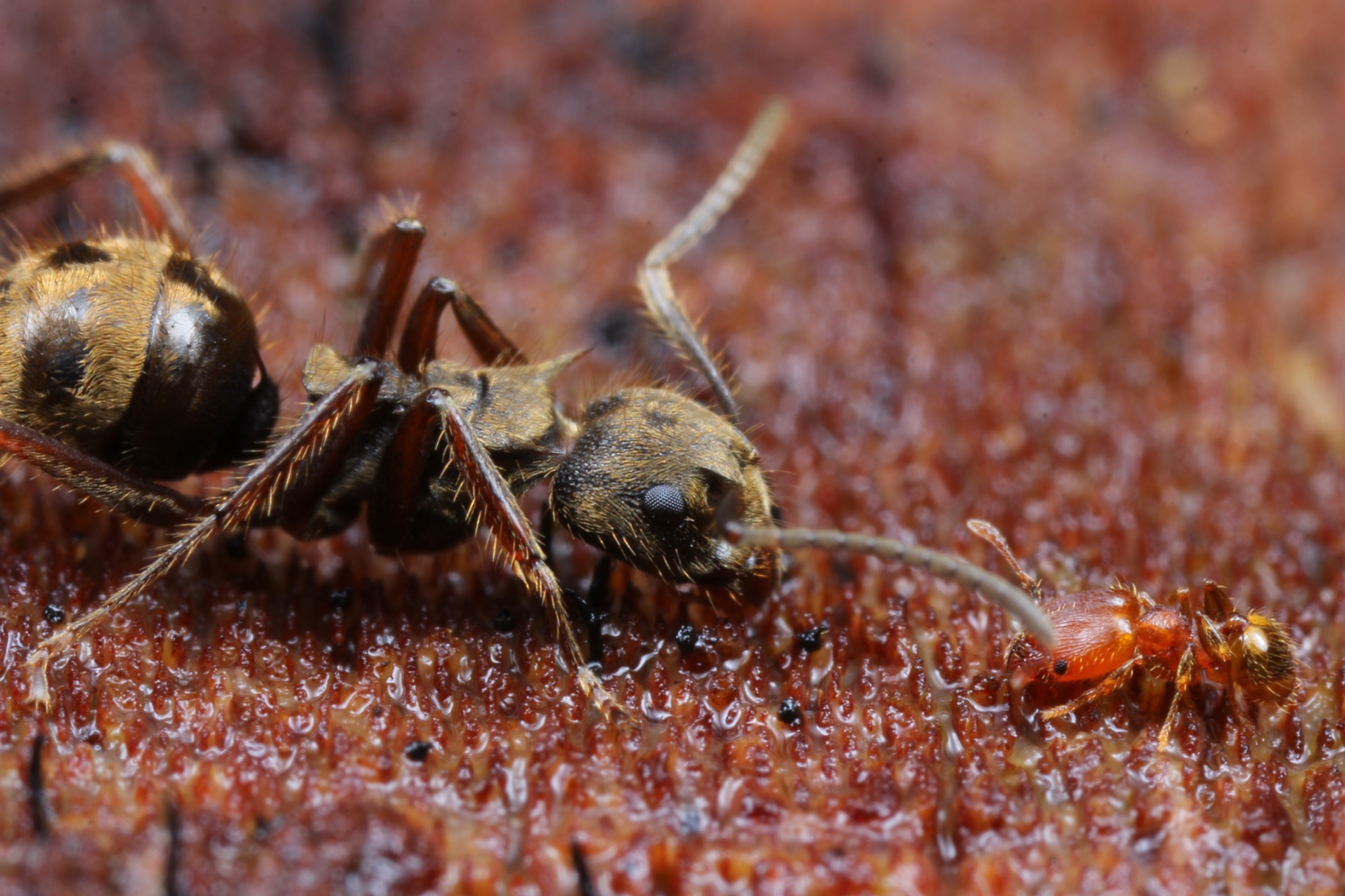 Die Dolichoderus gefällt mir. Ist die so groß oder die Pheidole so klein? Ist ja doch ein Soldat.