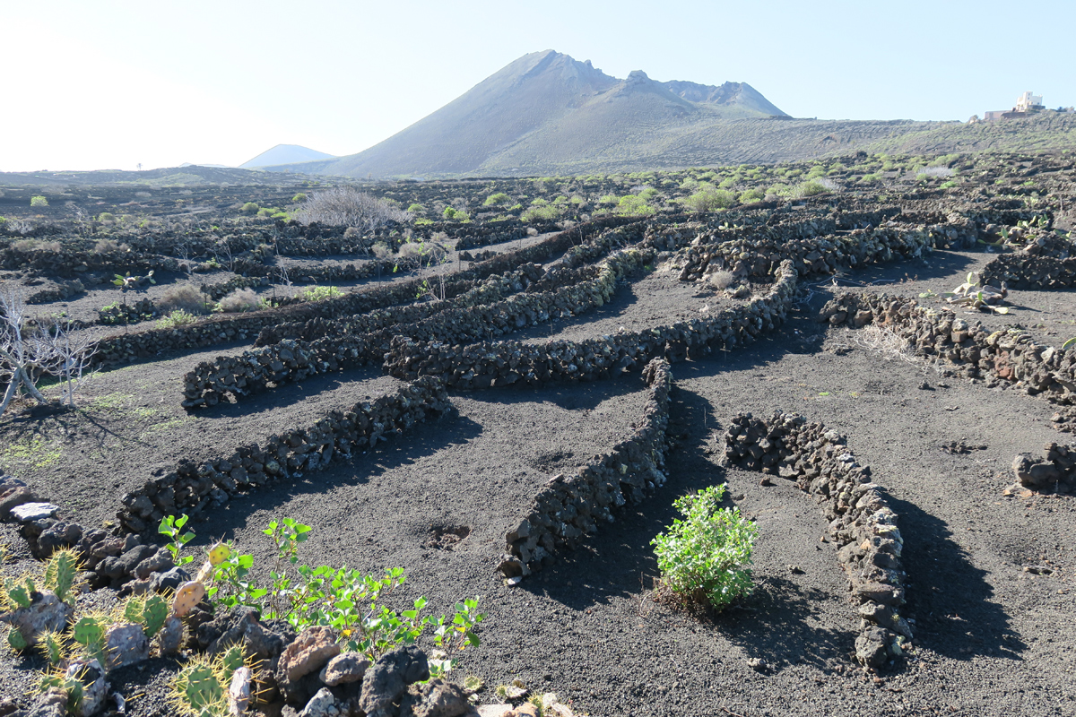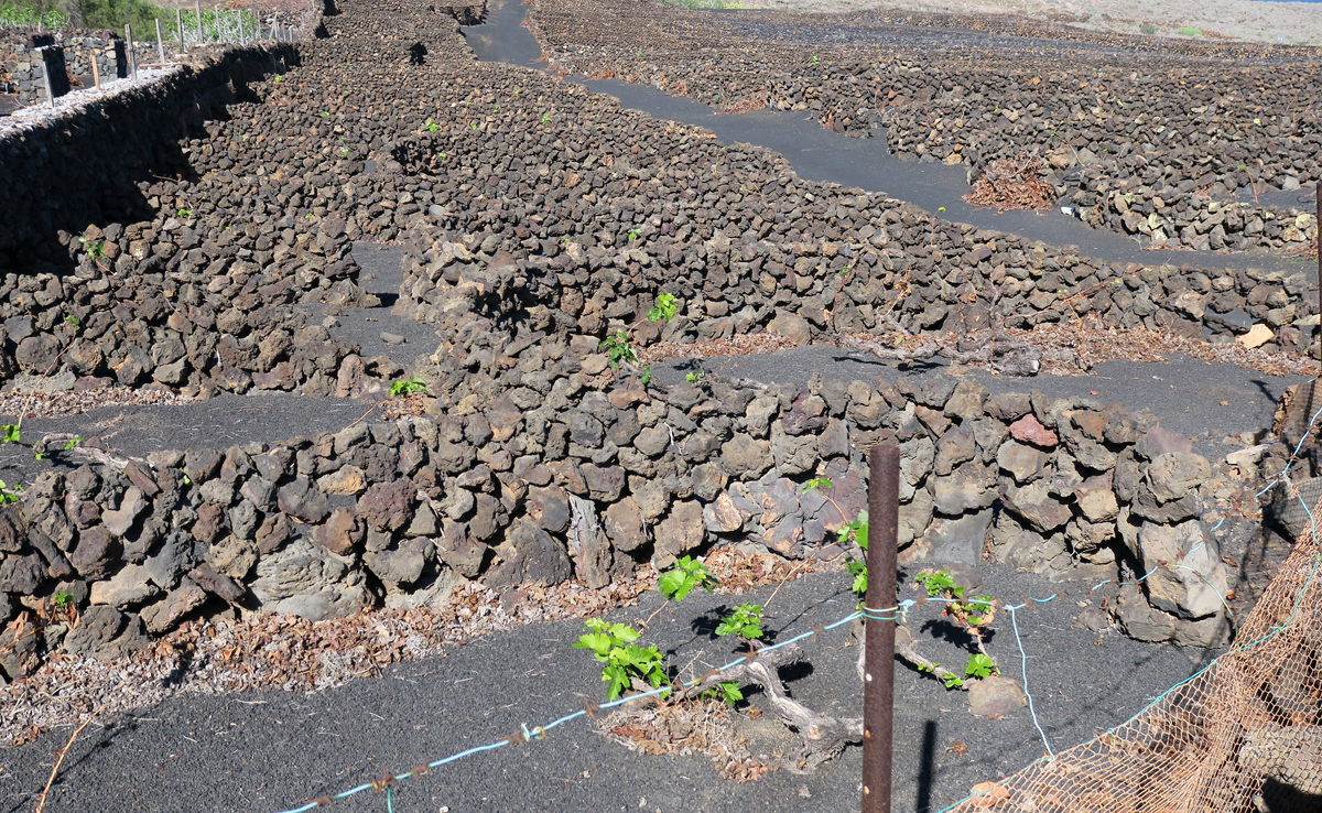 Lava-Grus gedeihen. Die zahllosen Mäuerchen aus groben Lavabrocken bremsen den Wind. Bei niedrigen Temperaturen